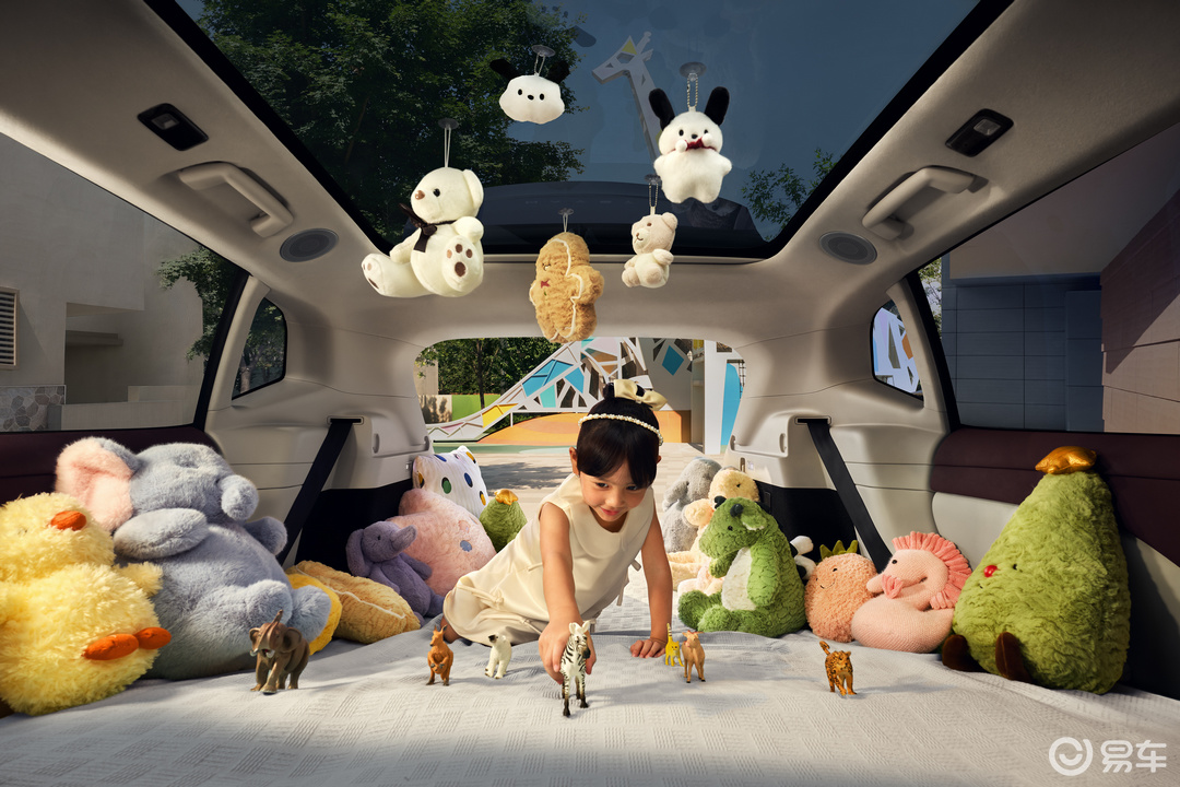 在内部空间设计上,岚图知音突破了行业极限,拥有90.8%的“得房率”和5.2㎡的超大实得内舱,实现了大内舱、大二排以及大储物的完美结合。前排座椅可以完全放平,与后排无缝连接,形成一个宽敞的贯通空间,无论是搬运大件物品还是户外露营,都能轻松应对。1038mm的有效腿部空间和1380mm的座椅宽度,为用户提供了舒展的乘坐体验。在储物空间上,双层魔术后备厢容积高达652L,满足家庭多场景收纳需求。