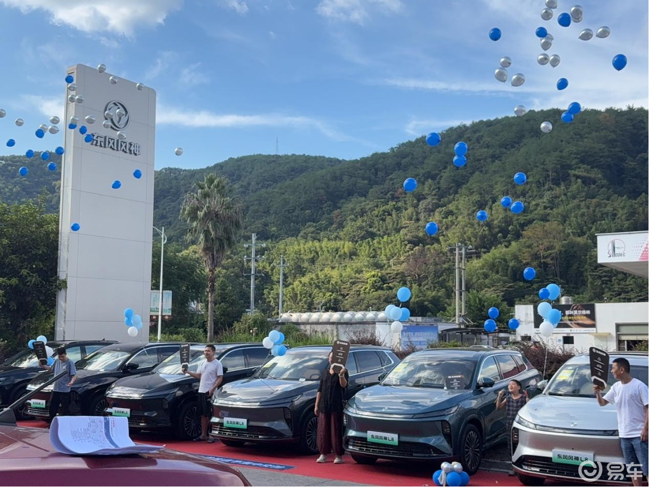 店外交车区成为了一道亮丽的风景线,红毯铺就的通道旁,一排崭新的东风风神L8整齐排列,车身在阳光下闪耀着金属光泽。车主们或站在车旁,与爱车亲密合影,脸上洋溢着幸福的笑容;或手持新车钥匙,兴奋之情溢于言表。蓝天白云与翠绿树木作为背景,让整个场景更显生机与活力,引得过往行人纷纷驻足,对这排“颜值担当”的座驾投去羡慕的目光。