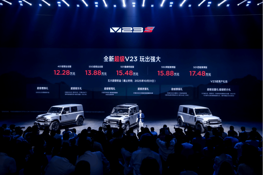 9月21日晚,iCAR品牌在安徽芜湖举办了一场以“玩出强大”为主题的V23超级之夜活动,正式推出全新iCAR V23家族车型。此次发布的三款车型包括401超级运动版、550超级运动版,以及首次亮相的超级V23S 501巅峰性能版,官方指导价区间为12.28万元至15.48万元。同时,超级V23赛博版也开启销售,提供两种配置,售价分别为15.88万元和17.48万元。