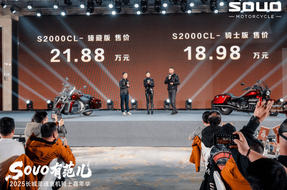 保定,这座承载着工业底蕴的城市,近日因一场摩托车发布会成为行业焦点。长城汽车旗下全新品牌“长城灵魂”携首款巡航重机S2000 CL高调亮相,18.98万元的起售价直接将国产摩托车带入20万元级高端市场,更以全球首创的水平对置八缸发动机和东方美学设计,重新定义了国产重机的技术高度与文化内涵。