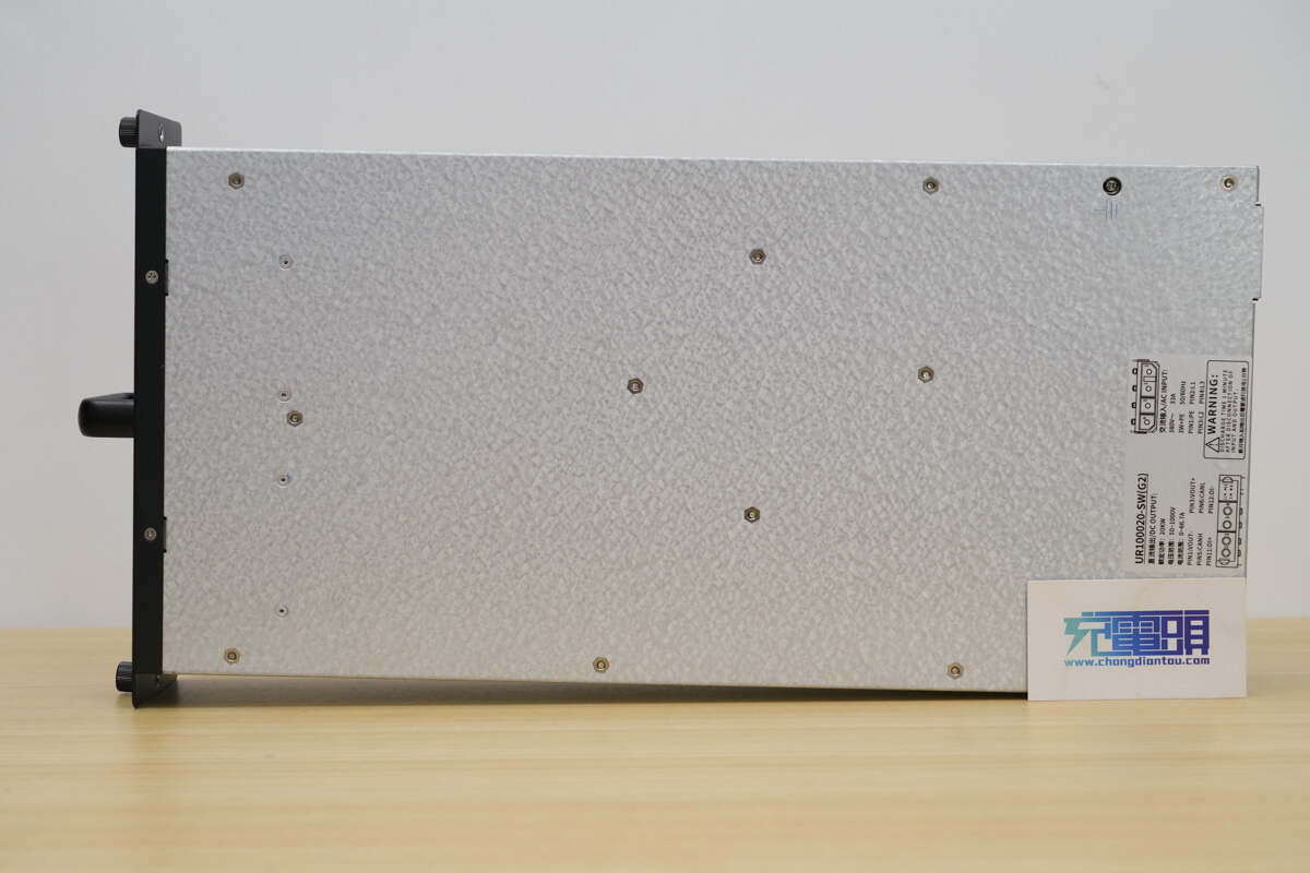 UR100020-SW充电模块在设计上注重实用性与可靠性。模块前面板配备LED显示屏、指示灯和按键,便于用户实时查看充电状态。两侧设有固定螺丝,中间位置配备提手和散热风扇,确保模块安装稳固且散热高效。模块背面设有交流输入连接器和直流输出连接器,交流输入采用四针防反接设计,直流输出连接器旁设有CAN通信接口,支持与充电桩系统的数据交互。