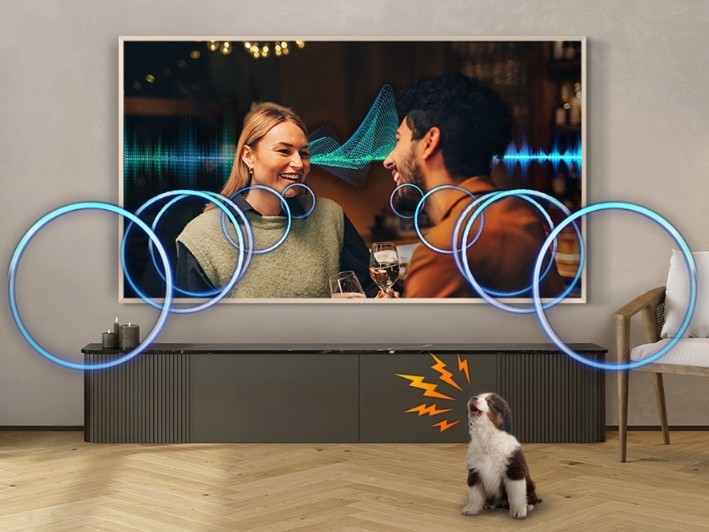 在音效维度,三星The frame画壁艺术电视支持杜比全景声技术,音画追踪OTS技术增强环绕声的逼真感。自适应音效Pro与智能控声Pro双擎驱动,能够智能分析音频播放环境和内容特性,让人物对话更清晰、声音更生动均衡。Q交响乐技术使得电视与条形音响同步发声,为用户带来堪比专业影院的听觉享受。