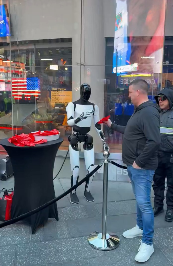 万圣节前夕,纽约时代广场迎来一位特殊的“节日使者”——特斯拉人形机器人“擎天柱”(Optimus)。它身着节日装扮,为过往行人递上糖果,成为街头一道独特的科技风景线。这并非“擎天柱”首次参与公共服务,早在去年特斯拉“We,Robot”发布会上,它便以侍者的身份为嘉宾端送饮品,展现了人机协作的潜力。