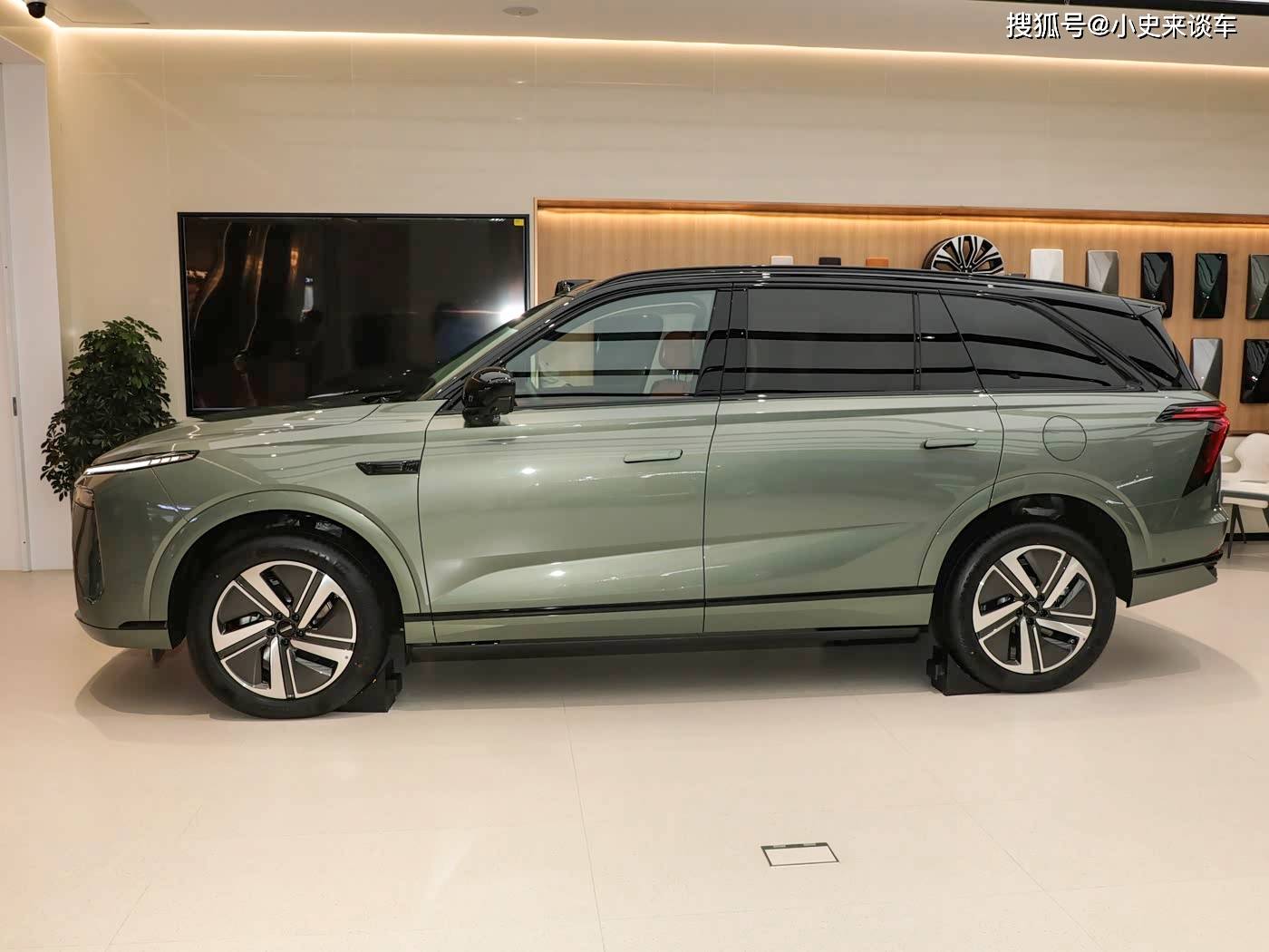 车身设计突破传统中大型SUV的臃肿感,5156mm车长配合悬浮式车顶与镀铬窗框,营造出修长优雅的视觉效果。21英寸多辐轮毂仅在中高配车型配备,其胎面宽度与轮毂直径的黄金比例,既保证了抓地性能又兼顾滤震舒适性。车门采用大角度开口设计,配合仅380mm的门槛高度,让老人无需弯腰、儿童轻松跨步即可入座。黑武士版本通过全黑涂装与亮黑轮毂的组合,为追求运动感的用户提供专属选择。