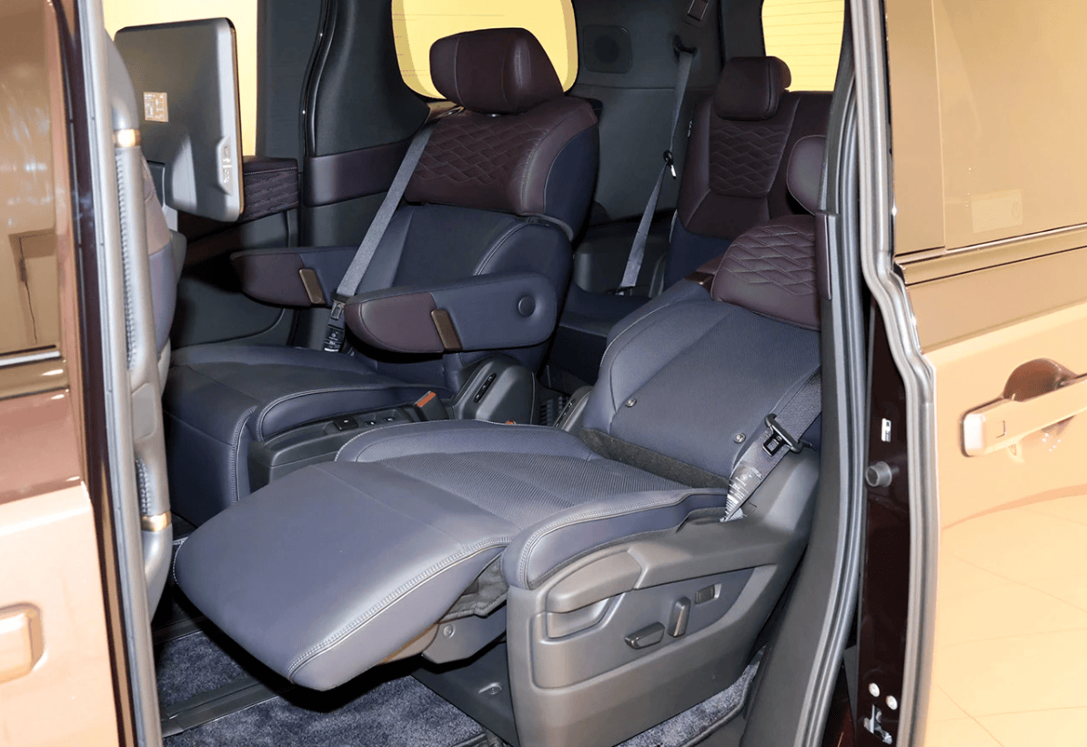 全新Elgrand的外观设计独具匠心,以“私人磁悬浮(线性电机车)”为设计理念。前脸部分,大尺寸无边框格栅十分吸睛,其内部设计灵感源自日本传统“组子”纹样,巧妙地将大面积结构与细腻细节相融合。大灯与前格栅融为一体,一体感极强,格栅上部采用贯穿灯带设计,中央的LOGO还可点亮,科技感满满。车身侧面线条流畅自然,让人不禁联想到高速且平顺、安静的磁悬浮列车,在彰显强大存在感的同时,兼顾了空气动力性能与静音效果。车尾部分,大尺寸贯穿式尾灯设计与车头相呼应,内部灯光点亮后同样采用“组子”纹样,整体造型和谐统一。新车尺寸进一步增大,长宽高分别为4995/1895/1975毫米,为车内提供了更为宽敞的空间。