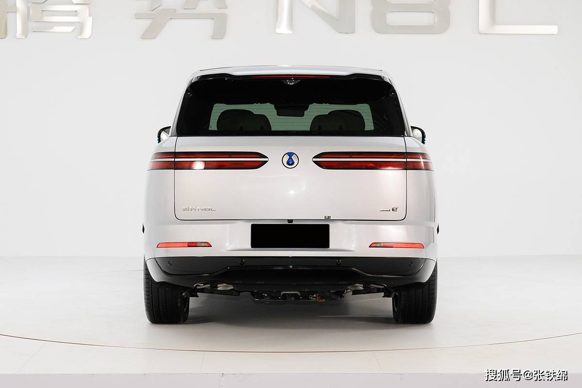 车尾造型延续腾势家族设计语言,与腾势N9形成风格呼应。贯穿式镀铬饰条连接两侧长条形尾灯组,在保持辨识度的同时提升设计质感。车身尺寸方面,1999mm车宽与1820mm车高构建出方正硬朗的轮廓,既保证内部空间又维持视觉平衡。