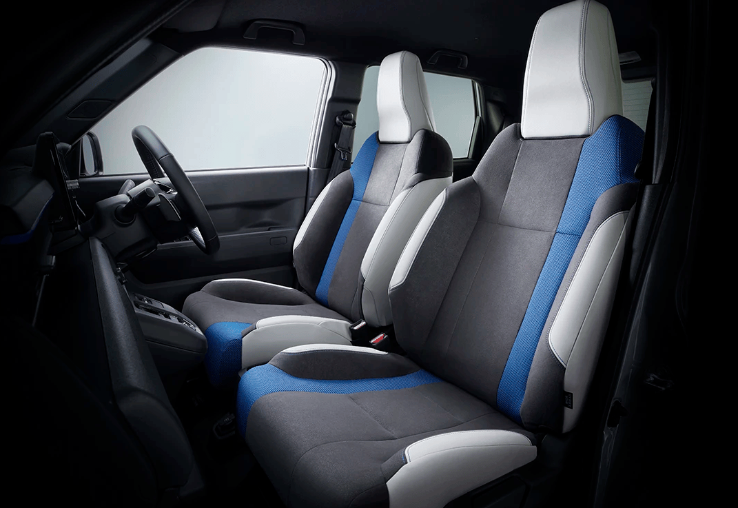 进入车内,Super-N概念车的内饰设计延续了N-One e:的整体思路。它采用了悬浮式的中控屏设计,既方便驾驶者操作,又提升了车内的科技感。同时,车内还保留了物理按键,在追求科技感的同时,也兼顾了实用性。整体配色以黑色为主,中控台和座椅则辅以蓝色装饰,这种色彩搭配既沉稳又不失活力,营造出一种舒适且富有科技感的驾乘环境。