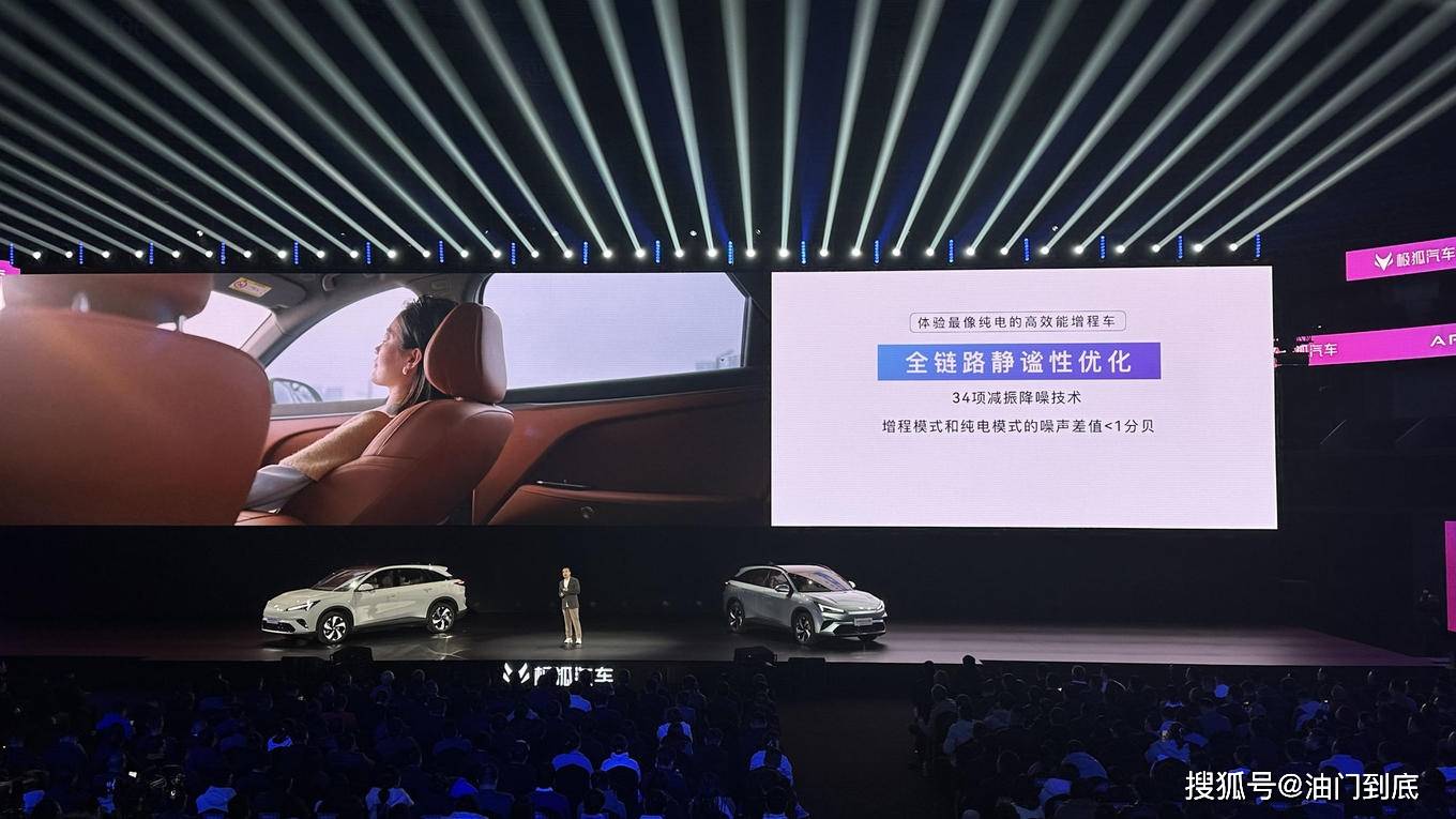 极狐对增程器进行了优化,采用自研的增程启停无感技术和主动抑制技术,使增程器启/停时的振动分别降低33%与25%。同时全车应用34项NVH优化技术,实现更接近纯电车型的静谧表现。