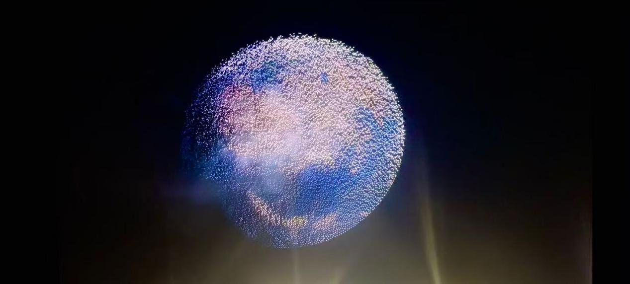当夜幕降临,科技之光再次绽放。当晚,近1.6万架无人机腾空,成功刷新“单台电脑控制最多无人机同时升空”纪录。表演以“一花一树一世界”为主题创意编排:无论是“一朵属于我的烟花”、挂载流星烟火的“空中之树”,还是硕大逼真的3D立体地球,都迅速出圈,尤其是“空中之树”凭借其独特设计在社交媒体被广泛传播。这不仅是规模的胜利,更是集群控制算法可靠性与艺术感染力的双重胜利。