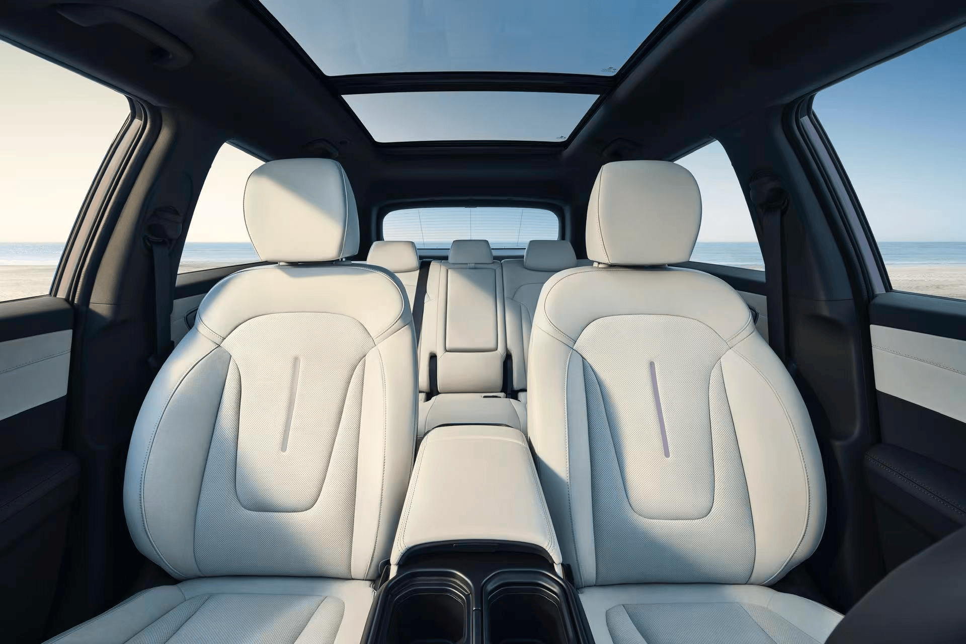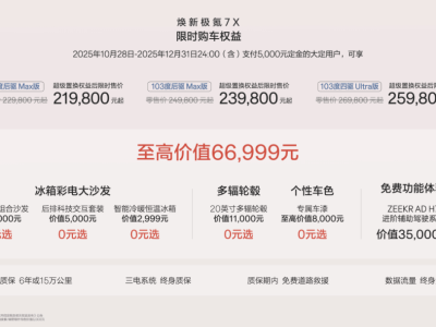 内饰空间采用阶梯式中控台布局,配备双色三辐方向盘与27英寸4K双联屏。创新取消传统仪表盘,改用远端抬头显示系统传递行车信息。换挡机构采用怀挡设计,中央岛台集成无线充电模块与多层储物空间。智能配置方面,全系标配高通8295芯片,为车机系统提供强劲算力支持。