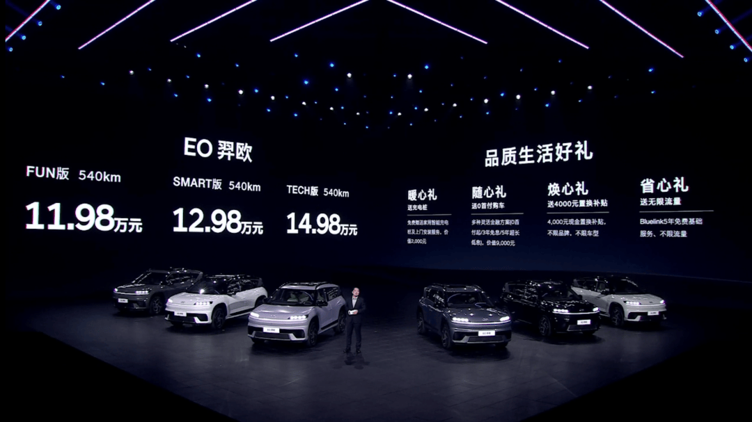 北京现代正式推出基于E-GMP全球电动车专用平台打造的首款国产车型——EO羿欧,新车共发布3款配置,售价区间为11.98万至14.98万元。作为品牌在纯电领域的重要布局,这款车型的上市标志着北京现代"智启2030计划"进入实质性推进阶段。根据规划,未来五年企业将推出20款新产品,其中新能源车型占比达65%,涵盖7款燃油车与13款新能源车型。