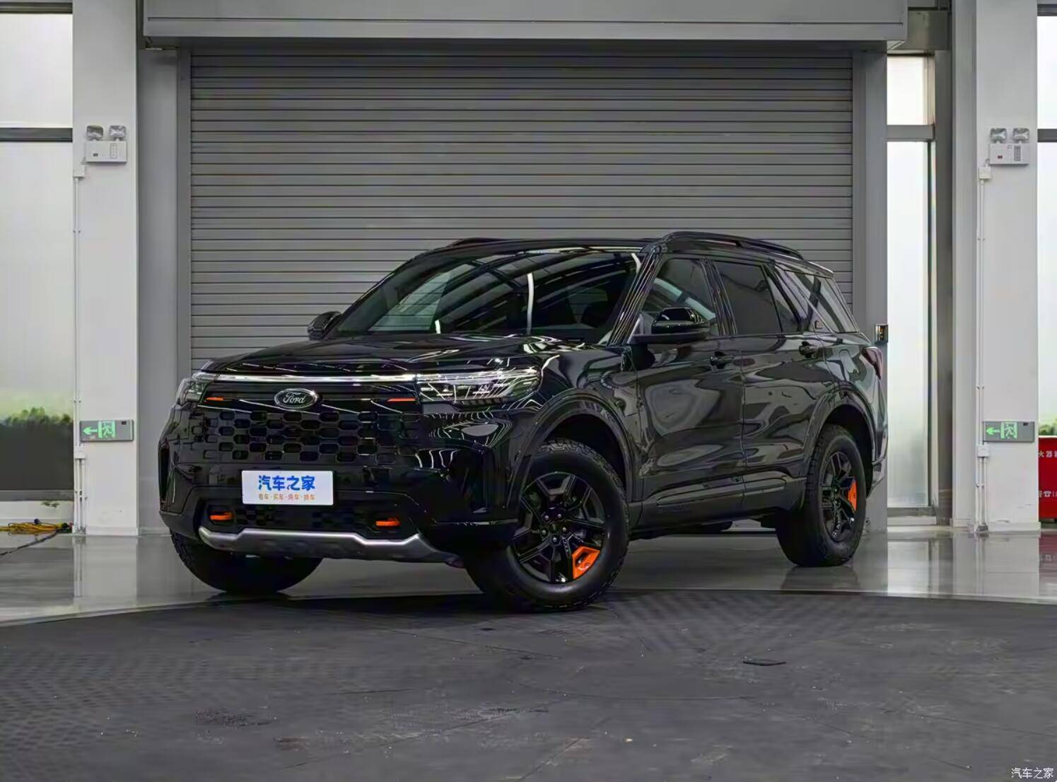 美系品牌福特则推出了探险者昆仑穿越版5座车型。新车通过黑化车身设计、橙色装饰条以及18英寸轮圈搭配AT全地形轮胎,营造出硬朗的越野风格。尺寸方面,长宽高分别为4749/1880/1710mm,轴距2825mm。动力系统提供1.6T和2.0T两款成熟发动机选择,兼顾动力性能与燃油经济性。