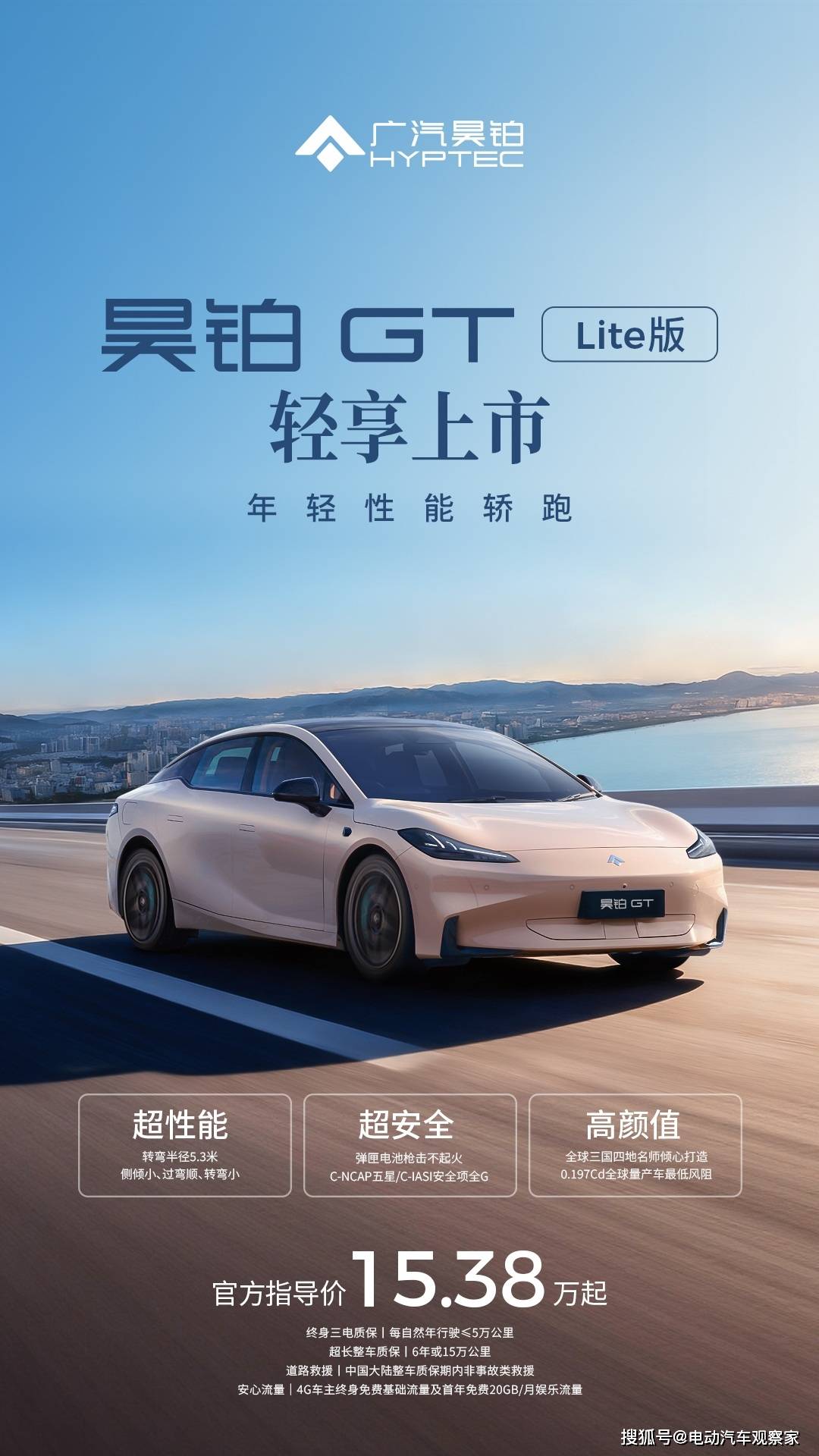 广汽昊铂GT全新Lite版日前正式登陆市场,为消费者带来两款续航版本选择——CLTC 560公里与630公里,官方指导价分别为15.38万元及15.88万元。即刻下定该车型的用户,可享受终身三电质保、超长整车质保、道路救援以及安心流量四大权益,全方位提升用车体验。