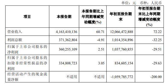 值得关注的是,公司经营活动产生的现金流量净额表现尤为突出,今年前三季度为-10.6亿元,与上年同期的10.6亿元形成鲜明对比。这一变化反映出公司在资金周转或业务运营方面可能面临新的挑战,也引发了投资者对公司财务健康状况的担忧。