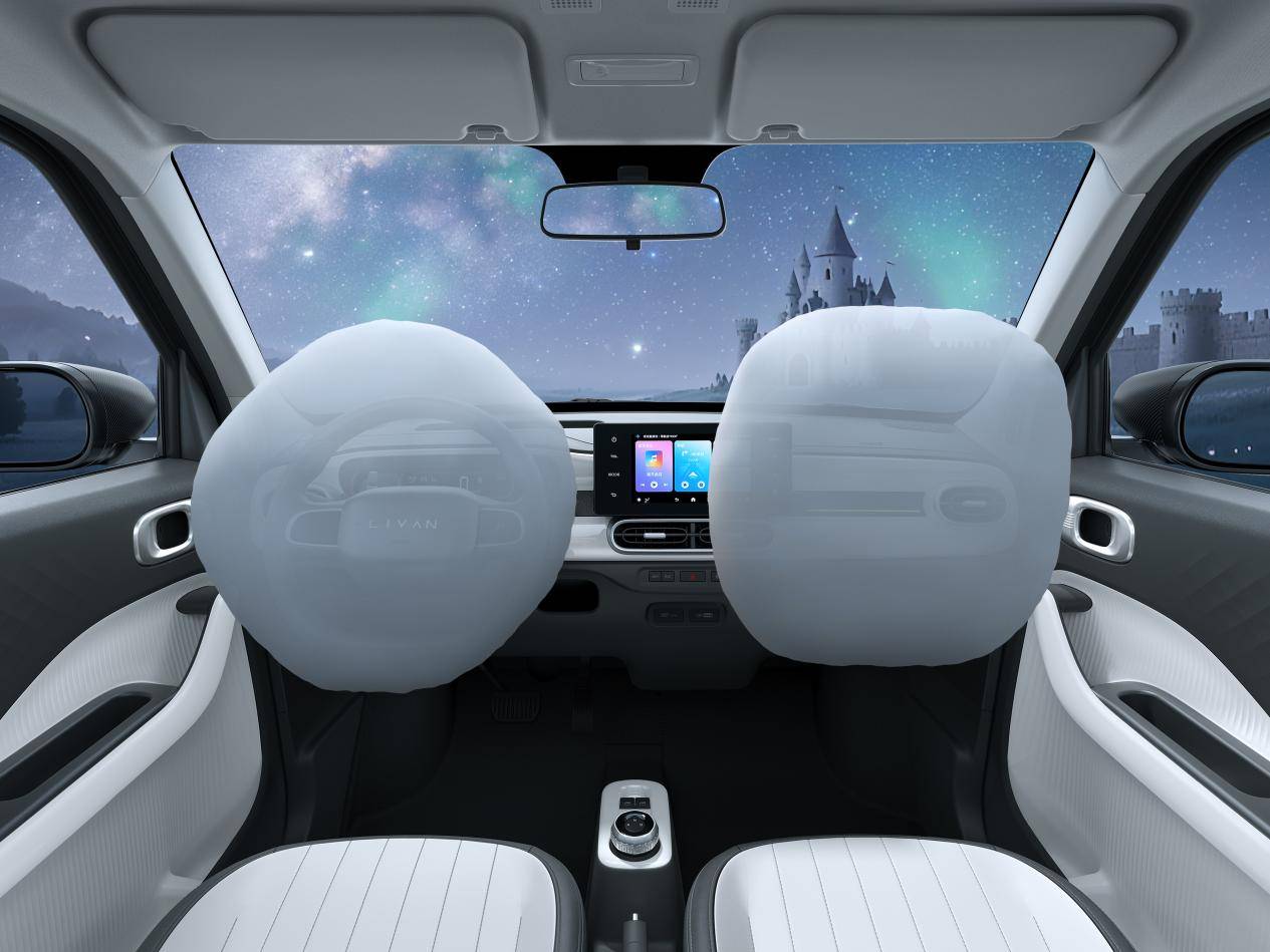 安全性能方面,睿蓝蓝气球打破了微型电车“低配安全”的固有印象。在多数竞品仅配备主驾气囊甚至无气囊的市场环境下,该车型全系标配主副驾双安全气囊,车身采用超高强度钢并搭配激光焊接车顶,使整体强度提升30%。其三电系统继承吉利技术体系,电池具备IP68级防护能力,并通过50余项严苛安全测试。车辆还搭载了由EPS电子助力转向、ABS防抱死系统与EBD电子制动力分配组成的三重电子安全网,配合倒车雷达、高清倒车影像及坡道辅助功能,大幅降低日常驾驶与假期出游中的安全隐患。