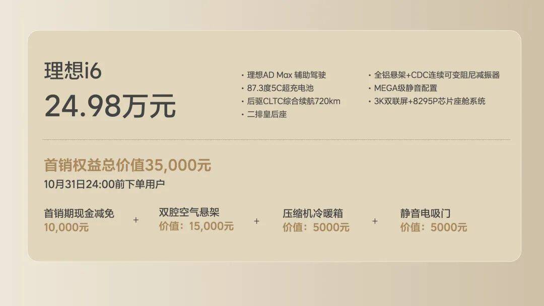 近期车市最受瞩目的新车,非理想i6莫属。这款纯电SUV在试驾阶段便引发广泛讨论,其23.98万元的首销期定价配合空悬、电吸门、冰箱等配置,让市场感受到理想汽车的诚意。