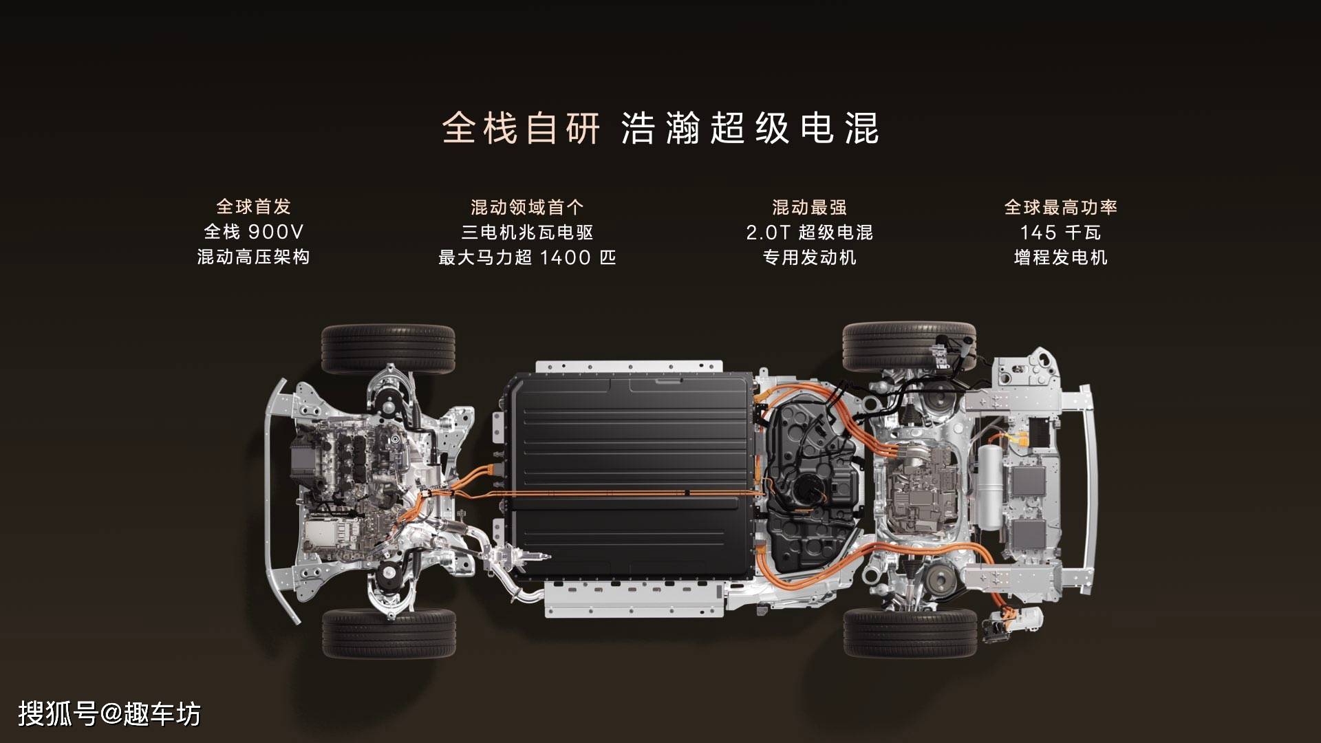 作为新能源领域的技术先锋,极氪9X首发搭载四大核心科技:浩瀚超级电混、浩瀚AI数字底盘、浩瀚安全盔甲与千里浩瀚辅助驾驶系统。其全球首套三电机兆瓦级混动电驱系统综合输出超1400匹马力,零百加速仅需3.1秒,最高时速达240公里,成为全球加速最快的旗舰SUV。配合与宁德时代联合开发的900伏混动专用电池,提供70度(CLTC续航380公里)和55度(CLTC续航300公里)两种方案,均支持6C超快充,9分钟即可从20%充至80%。