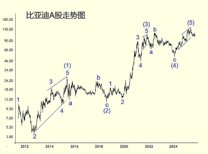 以比亚迪为例,其股价走势与S型曲线理论密切相关。根据波浪理论分析,比亚迪H股第[5]浪可能已于今年5月结束。具体来看,第[5]浪内部结构为楔形,由5个3浪结构的子浪组成。比亚迪A股方面,第(5)浪同样以楔形形态于今年5月见顶。假设投资者在2020年5月以约17元的价格买入比亚迪A股,截至9月25日收盘价107.5元,理论上可获利5.3倍,完美实践了S型曲线投资法。