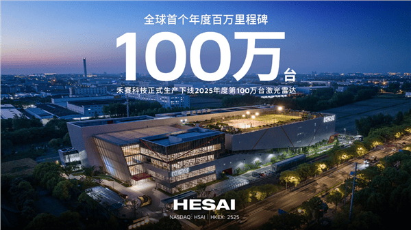 全球激光雷达行业迎来历史性时刻——禾赛科技(NASDAQ: HSAI;HKEX: 2525)宣布,2025年第100万台激光雷达已于9月底完成生产下线。这一突破使禾赛成为全球首家年产量突破百万台的激光雷达企业,标志着其"年百万级"超大规模量产能力正式确立行业标杆地位。该里程碑的达成,也意味着禾赛科技创业初期设定的"2025年让全球1%车辆具备三维感知能力"愿景即将成为现实。