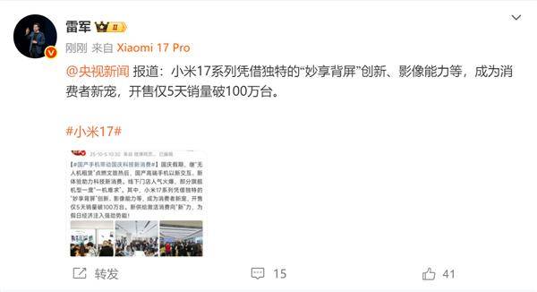 从销售数据来看,小米17系列不仅延续了品牌一贯的市场热度,更在消费升级趋势下展现出强劲增长势头。全系机型在开售5天内即突破百万台销量,这个成绩既验证了产品策略的有效性,也为国产手机品牌冲击高端市场提供了新的参考样本。