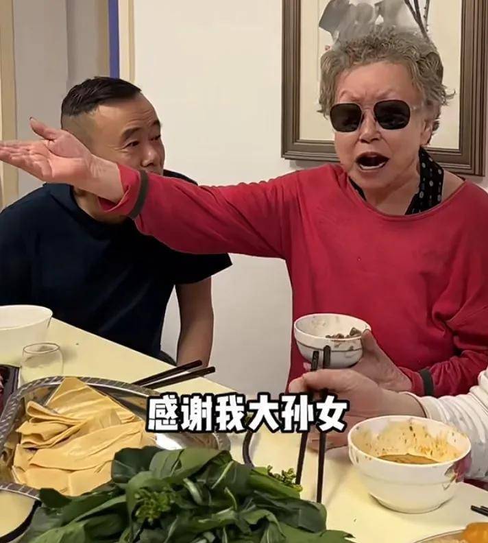 家宴现场,最抢镜的当属潘长江的父母。90岁的潘妈妈戴着时尚墨镜,一开口就是高亢的歌声,中气十足;潘爸爸则举杯助兴,两人精神矍铄的模样,彻底打破了外界对高龄老人身体状况的猜测。原来,墨镜是女儿潘阳为畏光的母亲特意定制的孝心礼物。而潘阳还偷偷爆料,父亲逛超市时总优先挑母亲爱吃的酱牛肉,给自己夹菜却随意得多,这种“偏心”的甜蜜,让网友直呼“太暖了”。