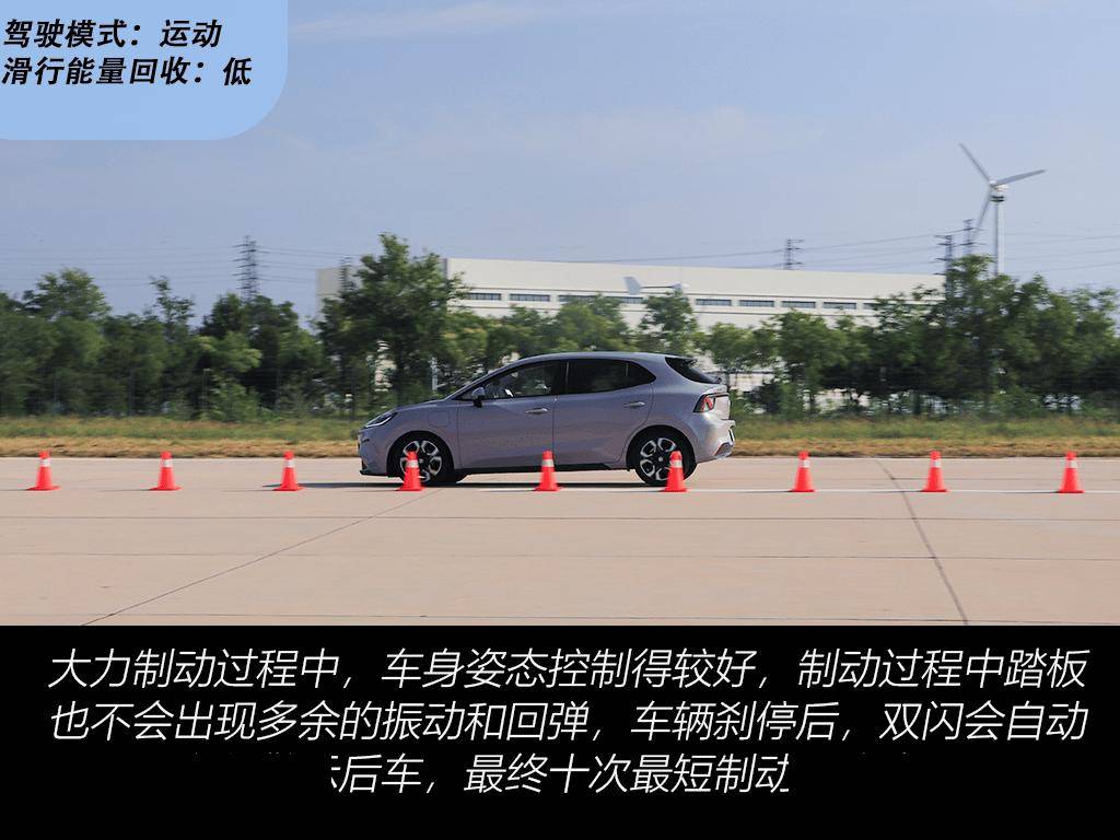 动力系统方面,MG4采用前置单电机布局,最大功率120千瓦,峰值扭矩250牛·米,匹配朝阳RADIAL RP76低滚阻轮胎。实测数据显示,其0-100km/h加速时间为8.02秒,0-400米加速用时16.07秒,尾速达138.17km/h。在连续多次加速测试中,动力输出稳定性表现突出,未出现明显衰减。制动系统采用前通风盘式+后盘式组合,100-0km/h最短制动距离仅36.77米,连续10次测试后最长制动距离为38.78米,热衰减控制优于同级车型。不过,朝阳轮胎在极限工况下易出现打滑现象,成为性能短板。