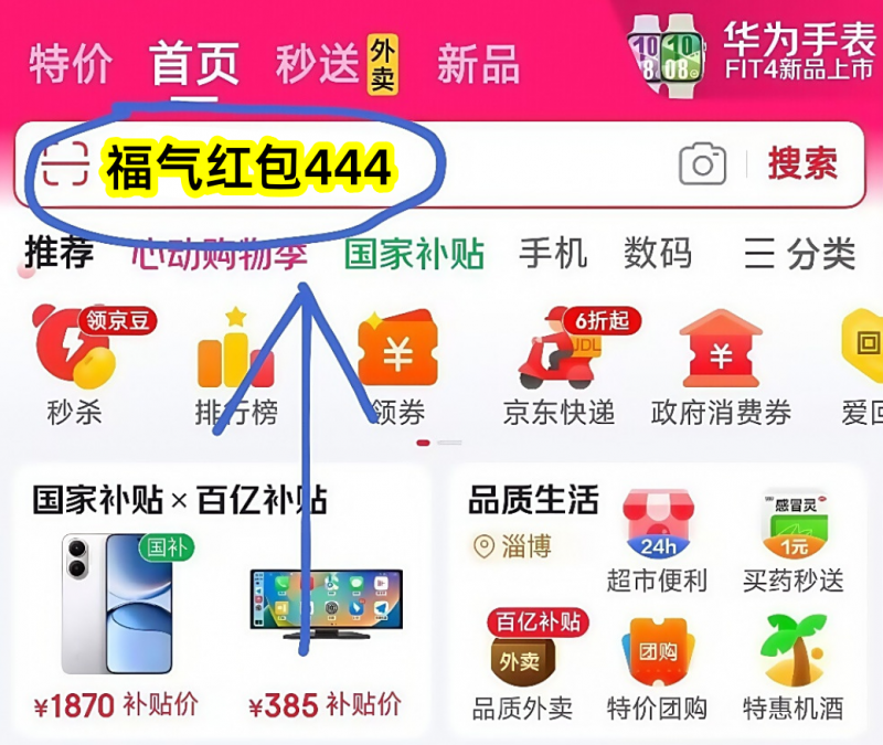 核心通道:打开手机京东APP,在搜索框输入指定口令即可进入活动页面。基础口令为【福气红包444】,每天尝试不同口令可获取更多优惠机会。