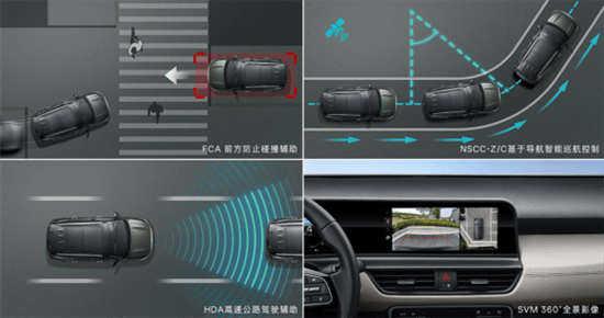 安全性能是另一大亮点。该车搭载了FCA前方防碰撞辅助(可识别车辆、行人、自行车及交叉路口)、LKA车道保持辅助、SCC智能巡航控制等20余项驾驶辅助功能,其中HDA高速公路驾驶辅助和SVM360°全景影像等同级罕见配置,构建了从城市道路到高速场景的全覆盖安全网络。例如,FCA系统不仅能预警前方车辆,还能探测行人及自行车,有效降低事故风险;LKA系统则在车辆无意识偏离车道时,通过方向盘震动和轻微转向力纠正路线。