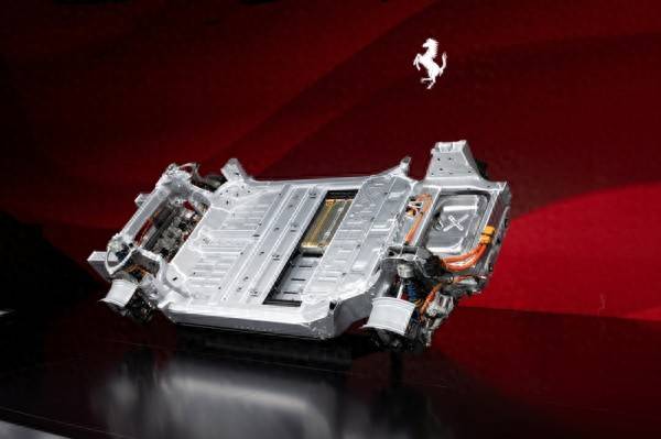 电池系统方面,法拉利纯电动车的电池系统100%自主设计组装,与车身底部完全集成,相比同级内燃机车型降低重心80毫米。85%的电池模块位于车身底板下方,剩余模块置于后排座椅下方,结合驾驶舱前移设计,实现47:53的理想前后重量分配。电池系统能量密度达约195Wh/kg(体积能量密度约195Wh/L),功率密度约1.3kW/L,处于行业顶级水平。