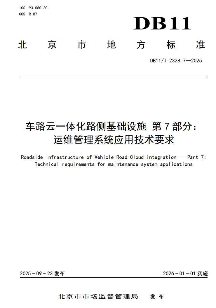 《运维管理系统应用技术要求》则突破传统设备管理范畴,首次提出"数字孪生运维"概念。标准规定路侧摄像头、雷达等设备需实时上传工作状态数据,运维系统应在30秒内完成故障定位,并支持通过AR技术远程指导现场维修。这种智能化管理方式可使设备综合利用率提升40%以上。