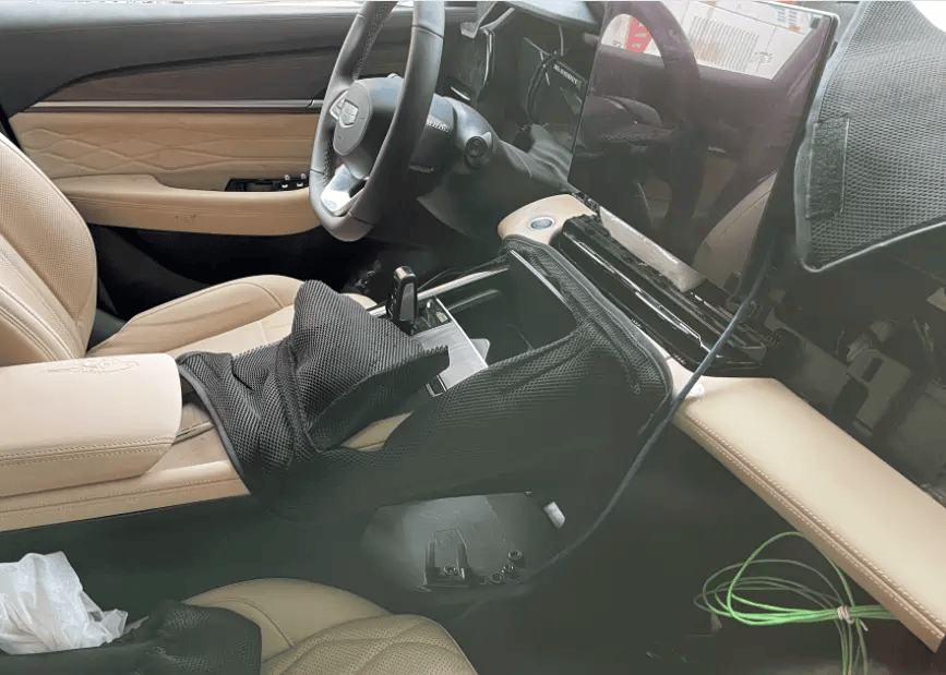 内饰是此次改款的重点区域。现款车型的双联屏设计被取消,取而代之的是一块独立的大尺寸中控屏。不过,这块屏幕的安装位置较高,部分观察者认为其可能影响驾驶视野,且整体视觉效果略显突兀。中央空调出风口位置进行了重新布局,下方实体按键被大幅精简,内饰风格更趋简洁。换挡机构改为小巧精致的电子挡把,进一步提升了车内科技感。需注意的是,当前曝光车型为试装版本,最终量产版可能存在差异。