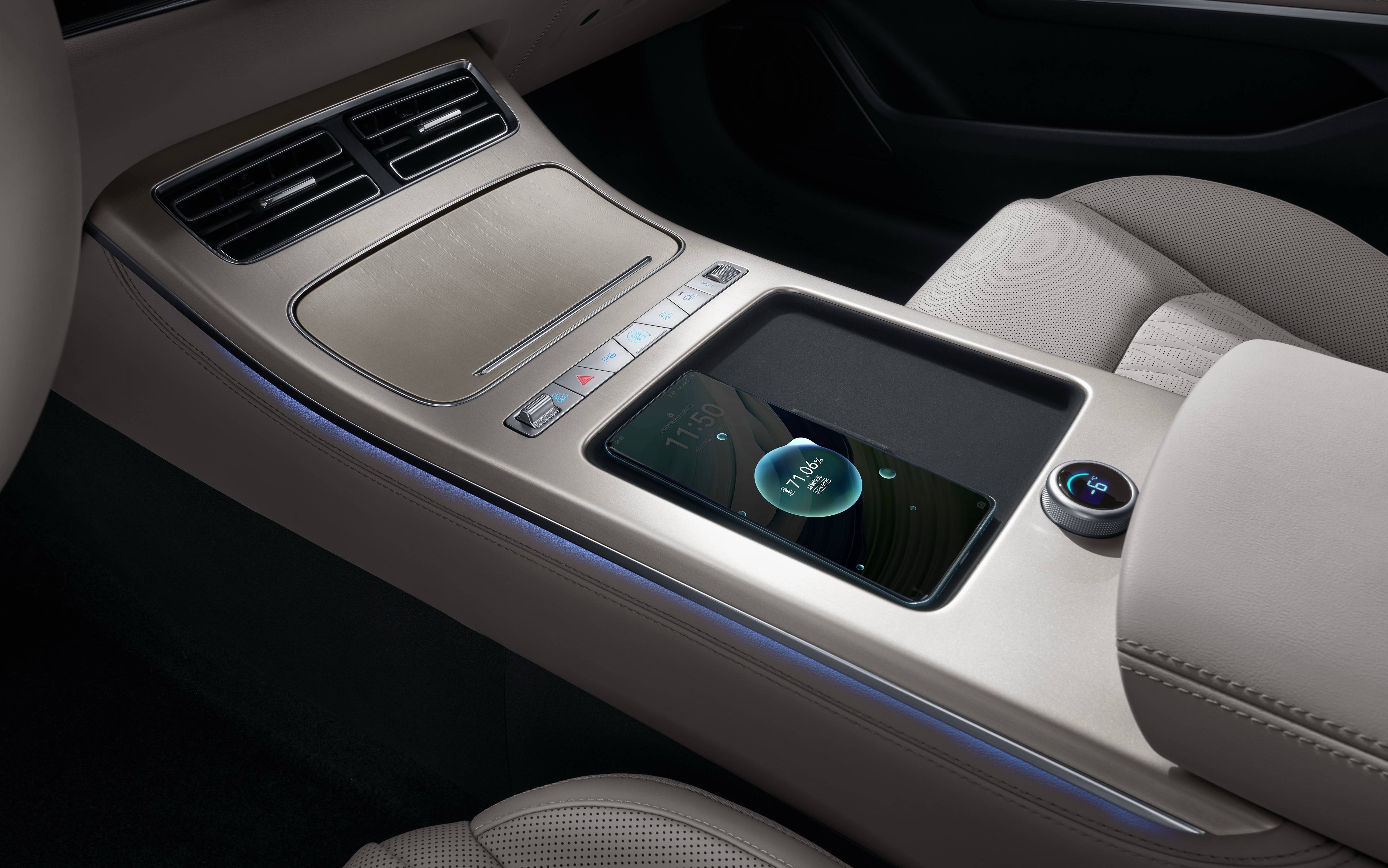 除了续航能力的提升,新车在设计上也进行了诸多优化。中网镀铬饰条、前大灯装饰条、车窗镀铬、后视镜以及翼子板装饰等细节均采用了黑化处理,营造出更加运动、时尚的视觉效果。车内中控台则用皮质面料替代了钢琴烤漆面板,同时换装了怀挡设计,并对物理按键区域进行了重新布局。新车还新增了无线充电面板和4.5L车载冰箱等实用配置,进一步提升了驾乘体验。