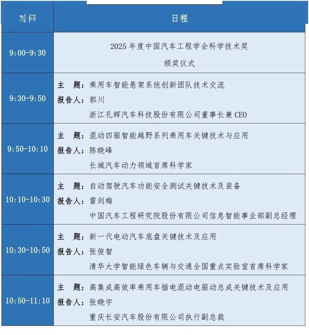 为激励在汽车行业科技创新领域作出卓越贡献的集体与个人,提升中国汽车工程学会科学技术奖的社会关注度,第三十二届中国汽车工程学会年会暨展览会期间,将同步举办“2025中国汽车工程学会科学技术奖励大会暨高等级奖项技术分享会”。
