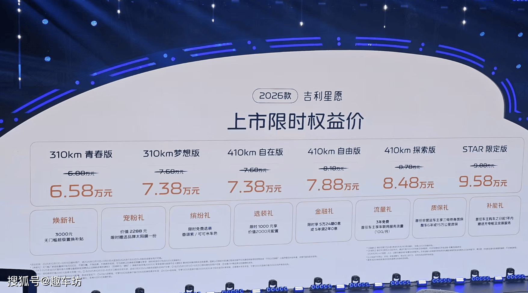 2026款吉利星愿近日正式登陆市场,官方指导价区间为6.88万元至9.88万元,若选择限时置换方案,价格可进一步下探至6.58万元至9.58万元。自前代车型上市以来,该系列凭借出色的市场表现,累计销量已突破40万辆大关,稳居全品类月销量榜首。