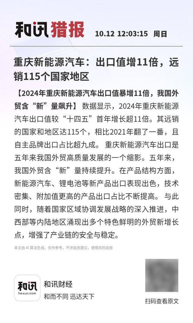 重庆新能源汽车出口“狂飙”:五年增超11倍,自主品牌占比超九成