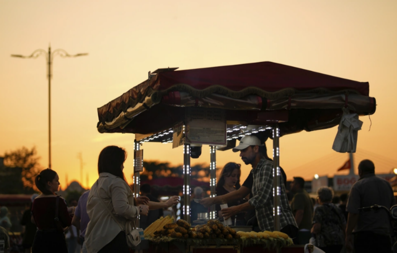 黄昏时分,伊斯坦布尔的空气开始变得厚重。太阳缓缓沉入博斯普鲁斯海峡,余晖把整座城市涂抹成橘红与金黄的层次。远处清真寺的宣礼声在空中回荡,与鸽群扑翅的声音交织在一起。就在这片渐渐收拢的光线里,大巴扎集市开始达到一天的鼎沸。