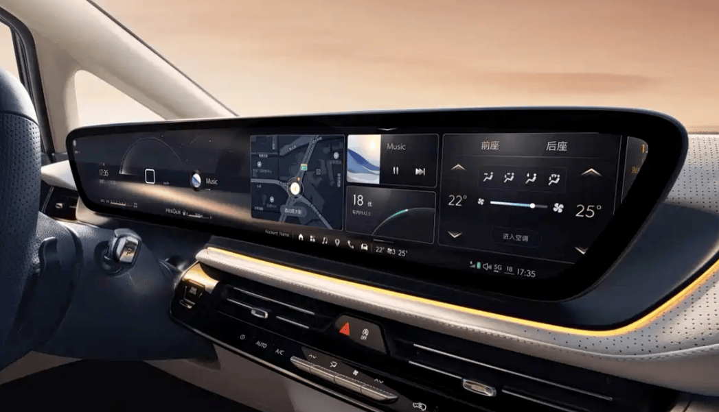 内饰空间的设计聚焦于豪华体验与场景化功能。前排区域配备30英寸一体弧面6K屏与四辐式多功能方向盘,扶手箱内置的4.3L压缩机冰箱可实现零下6度至10度的温度调节。后排乘客享有15.6英寸后舱智慧屏,通过"沙发管家"应用可下载超千款应用程序,配合AI大模型语音助手,支持绘画创作、知识问答、用车咨询等生成式交互功能。二排云感礼宾座椅采用12层复合结构,头枕部位以刺绣工艺呈现LPGA赛事定制图案,15.6英寸吸顶屏与电动长滑轨(720mm行程)的组合,使后排空间具备剧院级娱乐体验与灵活的布局调整能力。