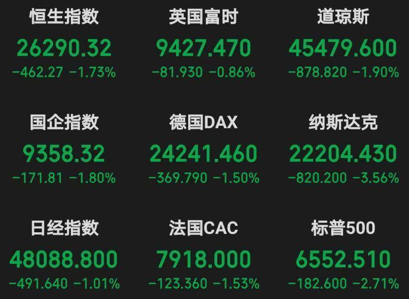 全球市场再度因关税冲击引发剧烈波动,海外主要股指在10月10日集体下挫。纳斯达克指数重挫3.56%,标普500指数下跌2.71%,纳斯达克金龙指数更是暴跌6.1%。中概股板块遭遇重创,阿里巴巴、拼多多、百度等科技龙头股均出现大幅回调,市场避险情绪显著升温。