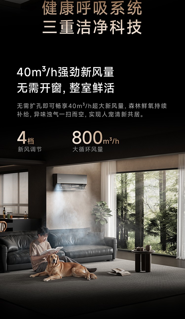 考虑到用户对健康生活的需求,追觅机械臂空调同时采用强劲新风焕新系统,40m³/h新风量配合H13级HEPA滤网,即便在紧闭门窗的情况下,也能让用户拥有健康清新空气。