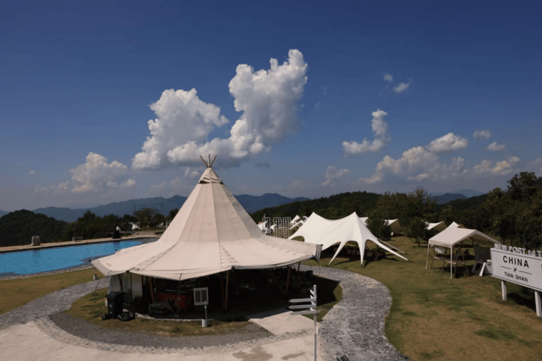 灵感的落地也并不简单。实际上草帽帐直径有14米,面积很大,结构还要稳固、还要防风,难度很大。正常的草帽的帽檐还要往上翘,为了防止被风掀翻,义乌市宣闻户外用品有限公司总经理朱悦来上方开出风口。后续又对出现的问题一一去探查解决,总共花费了半个月的时间。