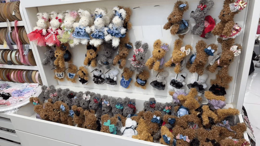 原本在做的时尚织带是铺料品类,和各行各业联系都很紧密。玩具、头饰、发饰、鞋带都需要织带的参与,碎片化订单严重。此前义乌鉴鉴织带老板娘龚红英为了更好的推广自家的产品,打版了不少成品进行场景化的销售。“很多客户都说你家这个产品很好看,我能不能直接拿到这个成品。”义乌鉴鉴织带老板娘龚红英提到转型潮玩的契机之一。