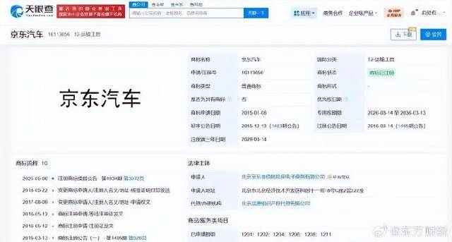 北京京东叁佰陆拾度电子商务有限公司在商标布局方面也下足了功夫。天眼查App显示,该公司已申请注册多枚与“京东汽车”相关的商标,涵盖运输工具、科学仪器、广告销售等多个国际分类。目前,部分商标已成功注册,为京东汽车的品牌建设提供了有力保障。