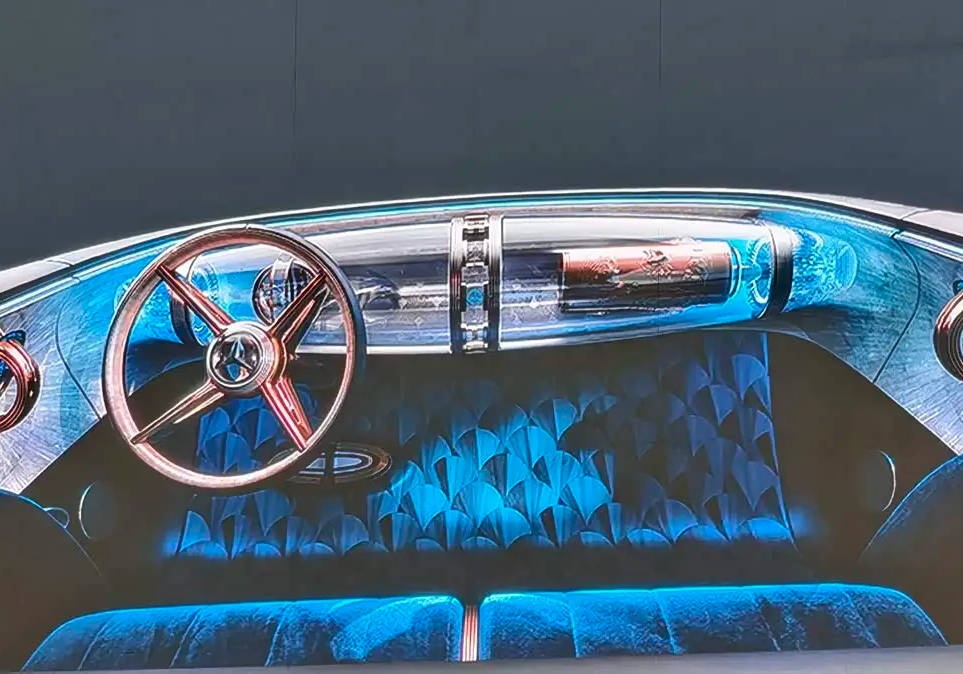 内饰空间则彻底摆脱传统驾驶舱逻辑,转向以乘客体验为核心的场景化设计。受装饰艺术(Art Deco)风格启发的华丽材质与工艺,在"齐柏林(Zeppelin)"悬浮式玻璃结构中达到高潮——这座位于仪表台中央的雕塑装置,不仅以流线造型展现艺术细节,更通过经典指针与数字仪表的共生,实现了机械美学与数字交互的完美平衡。自动驾驶技术的渗透让内饰蜕变为移动贵宾室,座椅布局与空间利用均围绕舒适性与私密性展开。