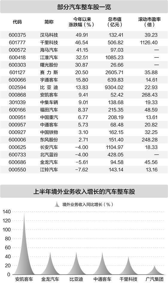 在出海方面,汽车整车企业的表现同样持续向好。根据上市公司财报公布的境外业务收入数据,6家上市公司上半年境外业务收入同比实现增长,其中安凯客车、金龙汽车、比亚迪增速居前。从长线来看,16家上市公司公布的2022年至2024年境外业务收入数据显示,我国汽车整车企业出海收入增长明显,其中比亚迪增长最多,由2022年的914.53亿元增长至2024年的2218.85亿元。