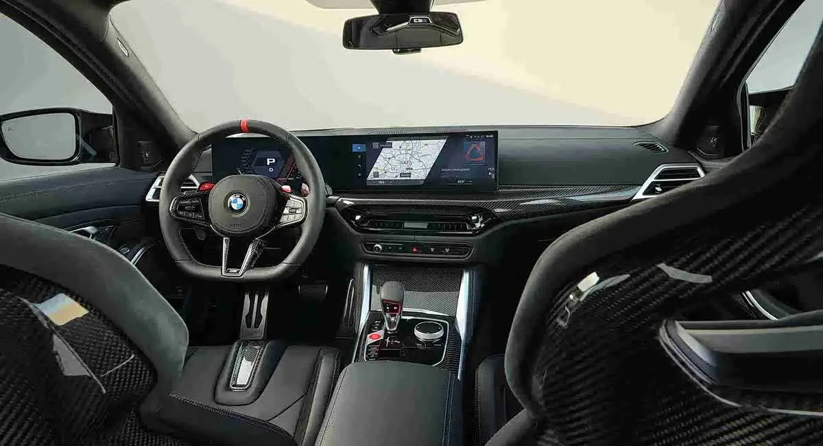 内饰方面,新车以运动化与精致感为核心进行升级。全新设计的平底M运动方向盘成为驾驶舱焦点,12点方向的红色回正标识与黑色皮质包裹形成鲜明对比,激发驾驶者的操控欲望。空调出风口由银色改为黑色,与中控台碳纤维饰板形成统一色调,营造出更具战斗气息的座舱环境。科技配置上,12.3英寸全液晶仪表与14.9英寸曲面中控屏组成双联屏系统,搭载最新BMW Operating System 8.5车机,支持无线CarPlay及智能语音交互功能。