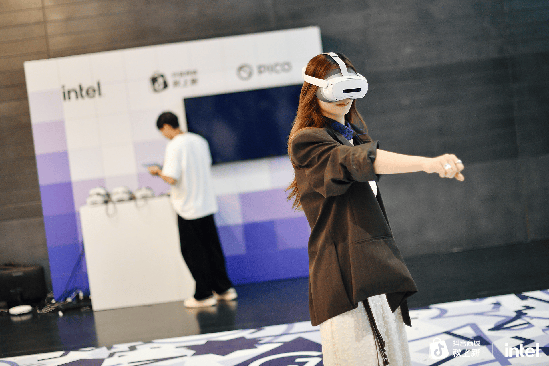 PICO展区提供的沉浸式VR体验。在本次“无边深界互动区”中,现场来宾可以佩戴PICO4 Ultra设备,体验由PICO & 英特尔联合开发的最新VR大空间科幻作品《太空奥德赛》。