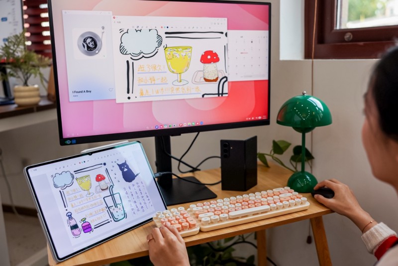 不仅搭载了至高14.6英寸的第二代动态AMOLED屏幕,三星Galaxy Tab S11系列还能连接显示器、键盘、鼠标等外设(均需单独购买)进一步拓展大屏体验。全新的Samsung DeX模式支持开启多达四个工作区,轻松开启不同应用程序,满足工作和学习的需要。手机与平板等还能实现通知的同步与剪贴板的共享,体验更加便捷。