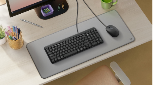 此外,针对入门级需求,罗技 MK106/M86/K106 有线键鼠套装提供即插即用的稳定连接和防泼溅耐用设计,采用高比例回收塑料,确保基础办公场景的可靠性与舒适体验。