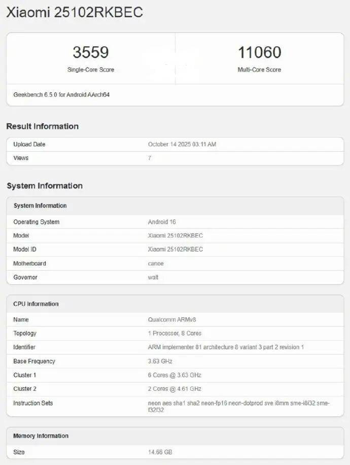 Pro版本则更进一步,REDMI Turbo 5 Pro将搭载天玑9400++处理器,性能对标旗舰芯片。续航配置堪称豪华,电池容量有望冲击9000mAh,辅以百瓦级闪充。金属中框与IP68/IP69顶级防尘防水功能得以保留,整体规格已接近K系列旗舰水准。与此同时,REDMI K系列也有新消息,K90 Pro现身GeekBench跑分库,单核成绩3559分,多核成绩11060分,搭载高通第五代骁龙8至尊版芯片,配备16GB内存与Android 16系统。影像系统采用5000万像素光影猎人950主摄、5000万像素超广角镜头与5000万像素潜望式长焦镜头组合,续航方面可能配备7000mAh或7500mAh大容量电池,支持100W有线快充与50W无线充电。