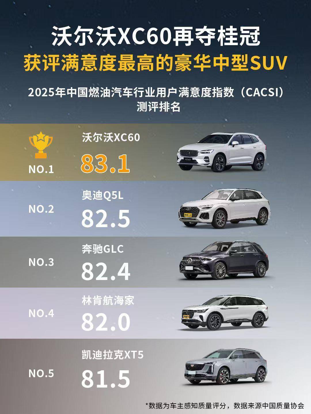 近日,中国质量协会公布了2025年中国燃油汽车行业用户满意度指数(CACSI)测评结果。在这场覆盖全国35家汽车生产企业、41个品牌的激烈角逐中,沃尔沃汽车凭借卓越表现脱颖而出,不仅连续两年蝉联“豪华品牌售后服务满意度第一名”,旗下明星车型沃尔沃XC60更以全维度领先优势摘得“豪华中型SUV满意度第一名”。这两项殊荣的获得,既是对沃尔沃品牌价值的高度认可,也体现了用户对产品与服务品质的深度信赖。